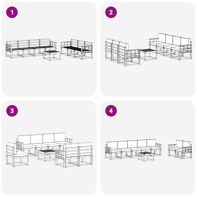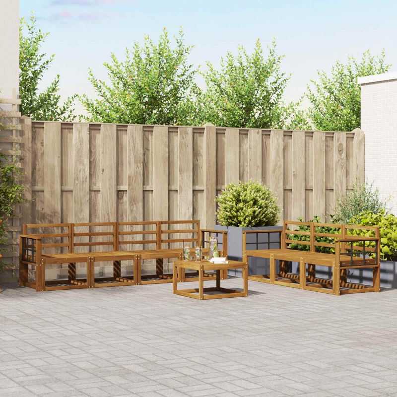 Този комплект за външни мебели обединява стил и практичност, създаваща уникален акцент за градината или терасата. Със своя модерен дизайн, чисти линии и минималистичен вид, той добавя елегантност и е идеален за социални събития. Направен е от масивна акациева дървесина, която гарантира здравина и дълготрайна привлекателност - перфектен за тези, които търсят стил и комфорт навън. Издръжлива масивна акациева дървесина: Тази мебел е изработена от масивна акациева дървесина, трайна и устойчива, идеална за всякакви външни условия. Конструкцията осигурява надеждност и стил, а топлият природен тон придава уют на всяка градина. Устойчив на климатични условия дизайн: С лакирана повърхност, този комплект предлага защита от слънце и дъжд. Полираният завършек запазва външния вид и функционалността, за дълготрайно удоволствие за вашия двор или тераса. Компоненти и дизайн: Всеки елемент, от подлакътниците до гръбчетата, е създаден с мисъл за стил и удобство. Осигурява допълнителен комфорт, а сбитият дизайн го прави визуално балансиран, подходящ за всякакви поводи на открито. Комфорт и гъвкавост: Модулният дизайн позволява различни конфигурации, подходящи за всяко пространство. Отличен за разпускане или социални събирания, комплектът лесно се адаптира, предоставяйки комфорт и удобство по всяко време. Лесна поддръжка: Поддържайте мебелите с влажна кърпа и избягвайте агресивни чистители. Редовната поддръжка запазва външния им вид и удължава живота на мебелите.