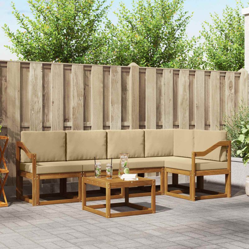 Комплект дивани за открито 6 pcs Натурален и Бежов