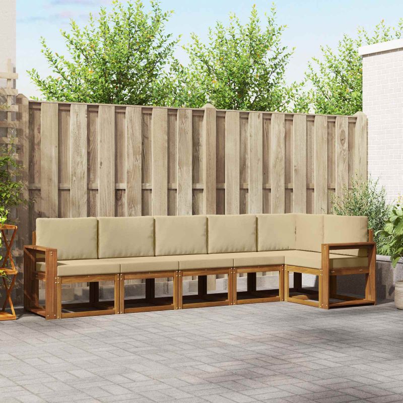 Този комплект мебели за открито съчетава стил с полезност, за да направи всяка градина или тераса впечатляваща. Модерният му дизайн с чисти линии и минимални детайли добавя елегантност, а същевременно насърчава релаксация на открито и социални събирания. Изработен е изцяло от стабилно акациево дърво, което гарантира дълготрайност и класен вид; идеален избор за тези, които искат комбинация от практичност и стил. Издръжлива акациева дървесина: Този комплект мебели е здрав и устойчив на атмосферни условия. Конструкцията осигурява надеждна опора, а топлият естествен тон е подходящ за всяка градина или тераса. Устойчив на времето: Лакираната повърхност ще ви защити от слънце и дъжд. Покритието помага за поддържане на визуалния вид и функционалността, осигурявайки дълготрайност за вашето открито пространство. Стил и функция: Всеки детайл, от подлакътниците до облегалките, е проектиран, за да бъде удобен и стилен. Дизайнът е визуално хармоничен, което го прави идеален за всякакви събирания. Комфорт на макс: Модулният дизайн позволява на дивана да се променя, за да отговаря на нуждите ви. Перфектен за релаксация с книга или за посещения с приятели, той се адаптира на мига за всякаква среда. Лесна грижа: За да запазите мебелите в перфектно състояние, просто ги чистете с влажна кърпа и избягвайте агресивни препарати. Редовната поддръжка ще удължи живота им.