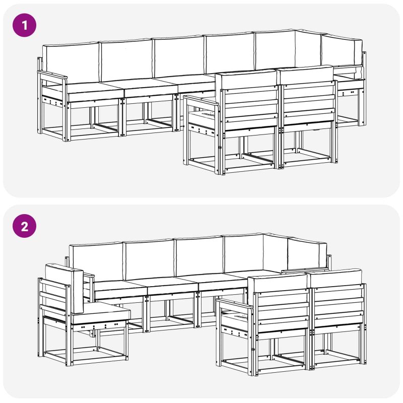 Комплектът за открито съчетава стил и практичност, създавайки впечатляваща централна част за всяка градина или тераса. Неговият модерен дизайн с чисти линии и минималистични детайли придава елегантност, докато разпуска атмосферата и събира приятели на едно място. Направен изцяло от масивно акациево дърво, той ти осигурява здравина и дълготрайна красота – идеалният избор за всеки, който иска стилна и практична мебелировка на открито. Издръжлив масивен акациев дървен материал: Създаден от масивна акациева дървесина, този комплект за открито мебели е известен със своята здравина и устойчивост на лошо време. Здравата конструкция осигурява надеждна опора и дълготрайна стабилност, докато топлият натурален нюанс придава уют на всяка градина или тераса. Устойчиво на времето проектиране: Този комплект разполага с лаково покритие, което добавя допълнителен слой защита от слънце, дъжд и всякакви елементи. Полираното покритие помага за запазване на външния вид и функциите му, осигурявайки дълъг живот за твоята градина, тераса или двор. Компоненти и дизайн: Всички части са проектирани така, че да съчетават стил и удобство. Подпорите осигуряват допълнителен комфорт, а елегантният дизайн създава визуално съгласуван комплект, подходящ за различни открити поводи. Комфорт и многофункционалност: Модулният дизайн позволява променливи конфигурации, за да отговори на различни нужди и пространства. Идеален е за релаксация, социални срещи или тихи моменти на четене – комплектът се приспособява лесно към всяка външна среда, като осигурява комфорт и лекота. Лесна поддръжка и грижа: За да поддържаш мебелите в добро състояние, почиствай повърхността с влажна кърпа и избягвай остри или абразивни почистващи средства. Редовната грижа помага да се запази видът и удължава живота на мебелите.