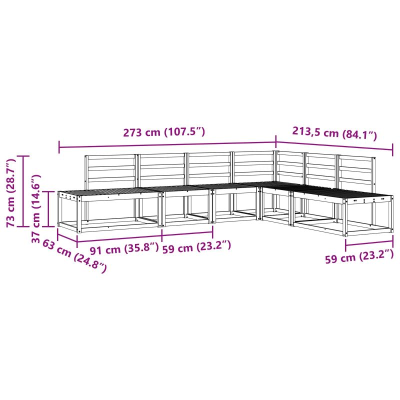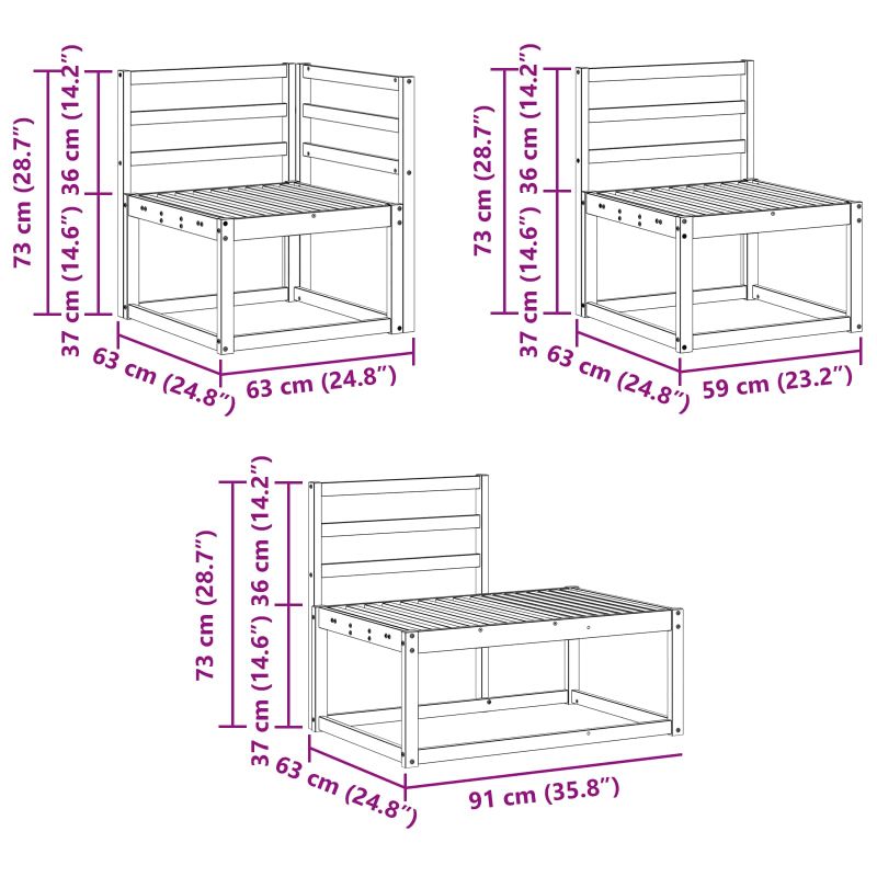 • 3 x Среден диван: 59 x 63 x 73 см (Д x Ш x В)