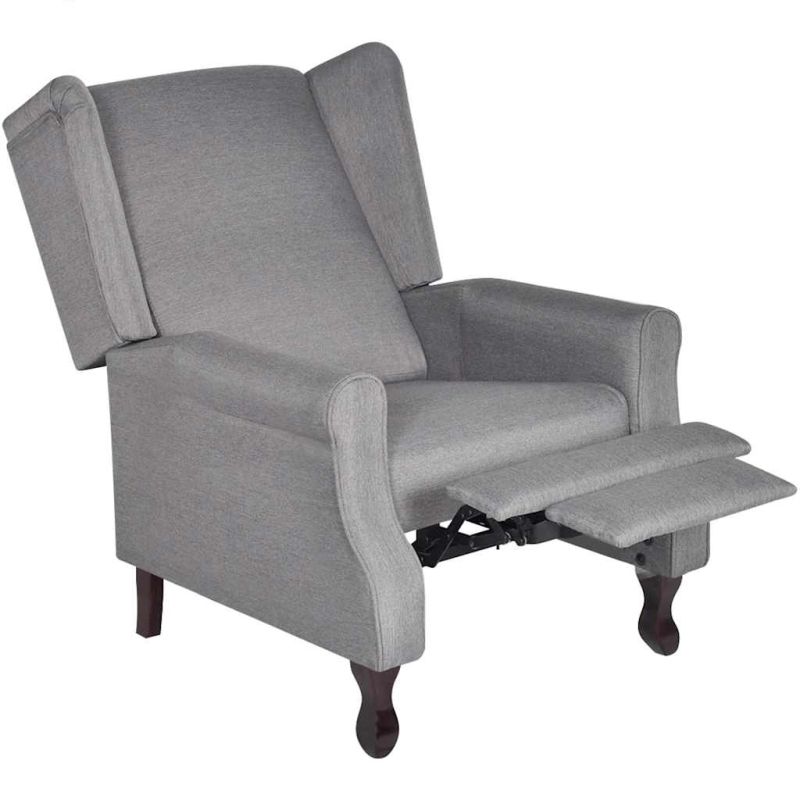 Това регулируемо кресло-реклайнер ще бъде чудесно декоративно допълнение към интериора на хола с класическия си дизайн. Този регулируем разтегателен фотьойл е идеален за възрастни хора. Облегалката може лесно да се наклони до удобна позиция, която да намали натиска върху гръбначния стълб. Това кресло има здрави дървени крака и е тапицирано с мек и удобен плат. Включената възглавница за седалката, подплатена с дунапрен, придава допълнително удобство. Регулируемото кресло е перфектен избор за чатене, четене, гледане на телевизия или просто за почивка. Максимално 110 кг на седалка. Съобразете се с риска от открит огън и други източници на силна топлина в близост до продукта.