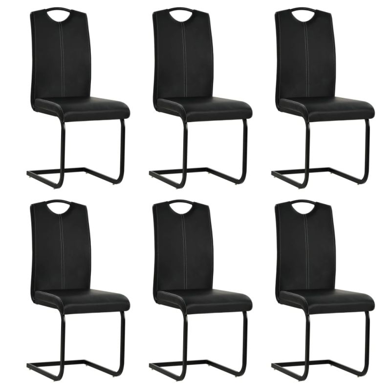 Конзолни трапезни столове, 6 бр, черни, изкуствена кожа