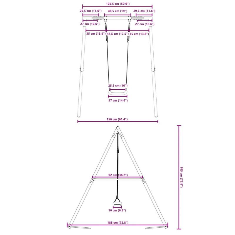Превърнете градината си в детска площадка за вашите деца с тази външна люлка! Издръжлива метална рамка: Тази рамка за люлка е изработена от боядисани стоманени тръби, които са устойчиви на ръжда, изключително здрави и устойчиви на деформация, осигурявайки отлична стабилност и издръжливост. А-образната структура предлага здрава опора без никакво колебание.Регулируема седалка за люлка: Тази градинска люлка е проектирана да расте с вашето дете, което я прави подходяща както за малки, така и за подрастващи деца. Чрез регулиране на дължината на въжето можете лесно да се приспособите към променящите се нужди на вашето дете.Многофункционални играчки за открито за деца: Тази градинска люлка помага на децата да подобрят своя баланс, координация, ловкост, сила и издръжливост, като същевременно предоставя различни начини за игра и упражнения.Широки приложения: Тази рамка за люлка може да се постави на различни места като градини, задни дворове, детски градини, детски площадки и др. Добре е да се знае:С оглед на безопасността всяка люлка трябва да се използва само от едно дете. Предупреждение. Не е подходящ за деца под 3 години. Само за домашна употреба. GPSR
