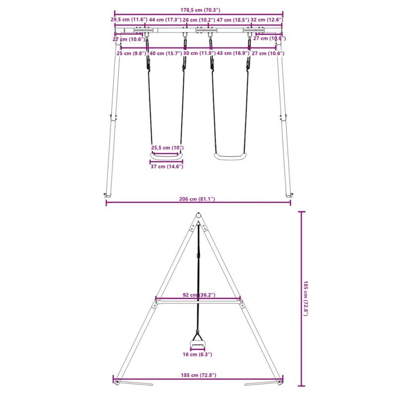 Превърнете градината си в детска площадка за вашите деца с тази външна люлка! Издръжлива метална рамка: Тази рамка за люлка е изработена от боядисани стоманени тръби, които са устойчиви на ръжда, изключително здрави и устойчиви на деформация, осигурявайки отлична стабилност и издръжливост. А-образната структура предлага здрава опора без никакво колебание.Регулируема седалка за люлка: Тази градинска люлка е проектирана да расте с вашето дете, което я прави подходяща както за малки, така и за подрастващи деца. Чрез регулиране на дължината на въжето можете лесно да се приспособите към променящите се нужди на вашето дете.Многофункционални играчки за открито за деца: Тази градинска люлка помага на децата да подобрят своя баланс, координация, ловкост, сила и издръжливост, като същевременно предоставя различни начини за игра и упражнения.Широки приложения: Тази рамка за люлка може да се постави на различни места като градини, задни дворове, детски градини, детски площадки и др. Добре е да се знае:С оглед на безопасността всяка люлка трябва да се използва само от едно дете. Предупреждение. Не е подходящ за деца под 3 години. Само за домашна употреба. GPSR