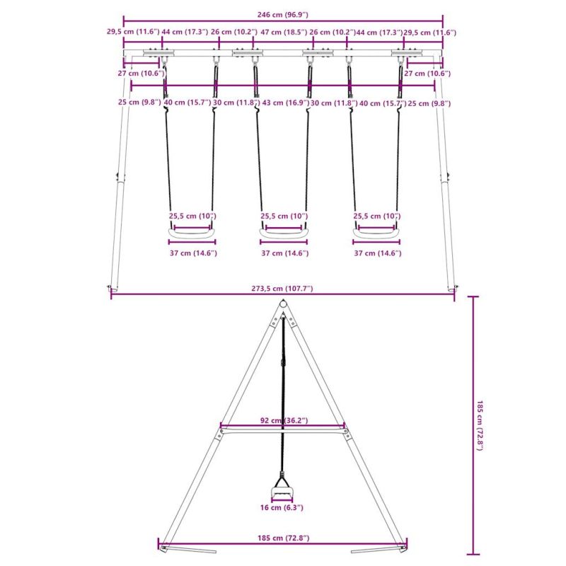 Превърнете градината си в детска площадка за вашите деца с тази външна люлка! Издръжлива метална рамка: Тази рамка за люлка е изработена от боядисани стоманени тръби, които са устойчиви на ръжда, изключително здрави и устойчиви на деформация, осигурявайки отлична стабилност и издръжливост. А-образната структура предлага здрава опора без никакво колебание.Регулируема седалка за люлка: Тази градинска люлка е проектирана да расте с вашето дете, което я прави подходяща както за малки, така и за подрастващи деца. Чрез регулиране на дължината на въжето можете лесно да се приспособите към променящите се нужди на вашето дете.Многофункционални играчки за открито за деца: Тази градинска люлка помага на децата да подобрят своя баланс, координация, ловкост, сила и издръжливост, като същевременно предоставя различни начини за игра и упражнения.Широки приложения: Тази рамка за люлка може да се постави на различни места като градини, задни дворове, детски градини, детски площадки и др. Добре е да се знае:С оглед на безопасността всяка люлка трябва да се използва само от едно дете. Предупреждение. Не е подходящ за деца под 3 години. Само за домашна употреба. GPSR