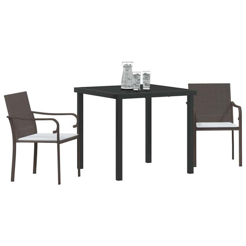 Комплект за хранене в градината 3 pcs Кафяв и черен ПЕ ратан