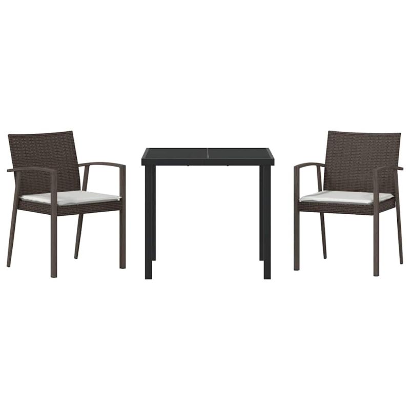 Комплект за хранене в градината 3 pcs Кафяв и черен ПЕ ратан