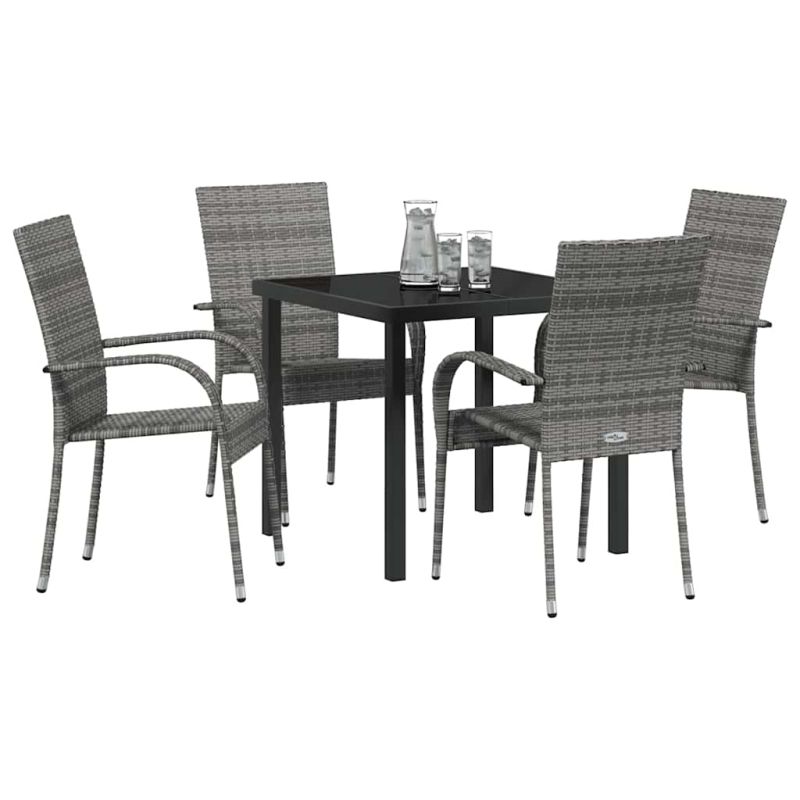 Този модерен комплект за хранене в градината придава стил и елегантност на всяко открито пространство. Със своите правоъгълни форми и стоманени елементи с прахово покритие, той предлага изчистен и модерен вид. Идеален е за пролетта и лятото, когато обичаш да хапваш навън, без да правиш компромис с красотата и функционалността. Съвременният му дизайн, с минималистичен декор и удобни подлакътници, допълва всяка балконска, пато или градинска обстановка. Премиум материали: Комплектът за хранене е от полиратан, който бързо изсъхва и е устойчив на атмосферни условия. Прахово боядисаните стоманени основи увеличават здравината и издръжливостта, придавайки елегантност. Съчетанието от материали е визуално приятно и практично за външна употреба, осигурявайки стилна настройка. Функционални компоненти: Черните стоманени крака са стабилна основа, която осигурява удобство. Завършеният гръб придава стилен вид от всяка страна. Комплектът има плоски подлакътници от полиратан, добавяйки комфорт. Уникални характеристики: Комплектът е проектиран с внимание към издръжливостта и предлага здравина за всякакви условия. С модерен стил и здраво покритие, той е идеален за редовно използване. Лесно поддържан, той подобрява хранителното преживяване. Многофункционална употреба: Идеален за балкони, патота и градини, комплектът служи за различни открити дейности. Независимо дали правиш летен бранч или вечеря с приятели, той е подходящ за всякакви поводи. Указания за поддръжка: За да запазиш комплекта, е добре да го покриваш, когато не се използва. Това защитава от сурови условия и удължава живота му. Редовното почистване с нежни средства поддържа оригиналното му състояние. Максимално 110 кг на седалка.