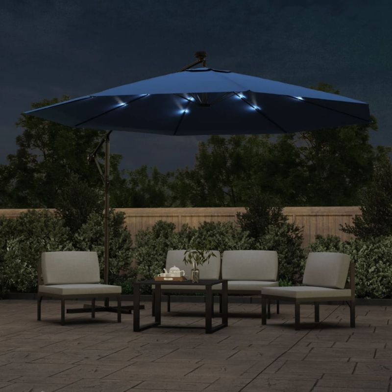 Конзолен градински чадър с прът и LED светлини, лазурен, 300 см