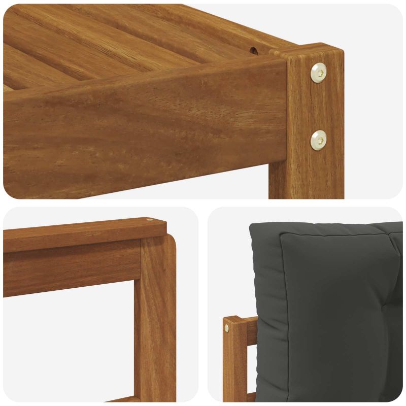 Този елегантен комплект за открито ще направи всяка градина или веранда да изглеждат невероятно с модерния си дизайн. Изработен с внимание, стилната акациева рамка съчетава красота и функция, създавайки уютно място за социални събирания или почивка. Масивна акациева дървесина: Комплектът е от висококачествена акациева дървесина, известна със своята устойчивост на дъжд и насекоми. Прекрасната дървесна текстура допринася за визията, а здравата конструкция осигурява дълготрайна поддръжка. Фиксирана рамка с ламели: Тази конструкция осигурява стабилност и опора. Изглежда модерно и гарантира, че всичко остава стабилно дори при честа употреба. Просторните места за сядане са идеални за събиране с приятели. Устойчиво на времето покритие: Комплектът е специално проектиран за открито. Покритията предпазват от UV лъчи и запазват цвета на дървото. Идеален е за тези, които искат качество, съчетано с стил. Поддържащ гръб с ламели: Предлага се с удобен гръб, който осигурява комфорт и подкрепа за продължителни часове излежаване. Направен е, за да помага да запазвате добра стойка и да се насладите на времето си. Модулен дизайн: Гъвкавата конфигурация на местата позволява различни решения за сядане. Независимо дали четете или организирате парти, комплектът може лесно да се адаптира към вашите нужди.