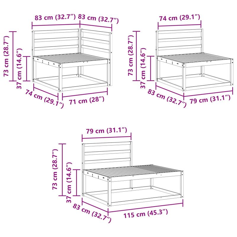 • 3 x Среден диван: 79 x 83 x 73 см (Д x Ш x В)