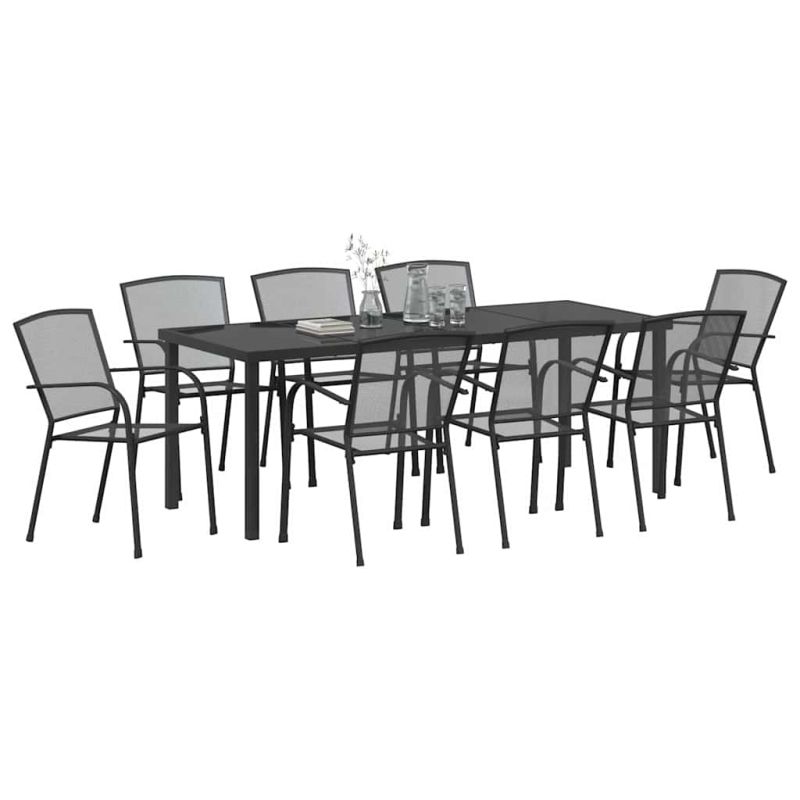 Този комплект за хранене на открито е страхотно допълнение към вашето пространство, със своята елегантна правоъгълна форма и стилен антрацитен нюанс. Перфектен е за вдъхновяващи събирания през топлите пролетни и летни сезони, той става основен център за приятелски разговори и хранения под открито небе. С изчистени линии и минималистичен вид, той безпроблемно се вписва в атмосферата на вашата градина или тераса. Състав на материала: Изработен от прахово боядисана стомана, известна със своята дълготрайност и устойчивост на лоши атмосферни условия. В комбинация със закалена стъклена маса, той предлага елегантен вид и надеждна повърхност за сядане. Функционални дизайнерски елементи: Завършенето на гърба му придава стил, дори на открито. Черните стоманени крака осигуряват стабилност за малки или големи събирания, изцяло подготвяйки ви за приятни вечери. Перфектен за открита употреба: Идеален за тераси и градини, той предлага приятно място за спокойно утринно кафе или весели вечери с близки. Дизайнът му осигурява многообразие и уют без загуба на стил. Бързосъхнеща функция: Проектиран да изсъхне бързо след дъжд, той е устойчив на натрупване на влага. Осигурява лесна поддръжка и дълготрайност през сезоните. Обширни инструкции за поддръжка: Просто е да се поддържа, просто го покрийте, когато не се използва, за да запазите свежия му вид и здравина, така че да се наслаждавате на повече време на открито без излишно притеснение. Максимално 110 кг на седалка.