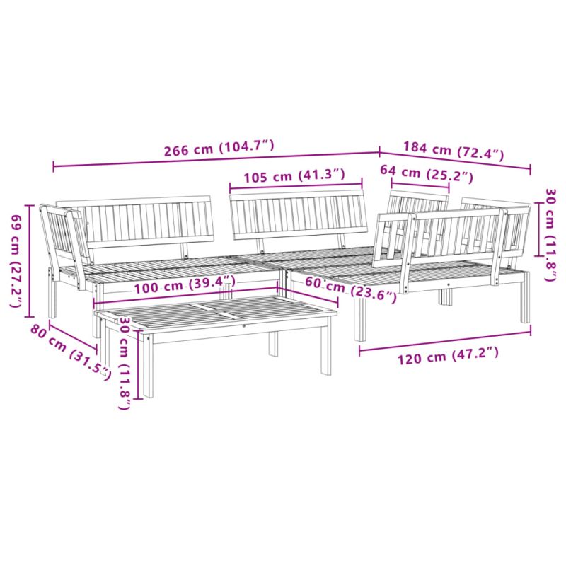 Този комплект дървени дивани от палети включва 1 маса и 3 дивана. Това е отличен избор за релаксираща употреба на открито. Устойчив материал: Масивното акациево дърво е красив естествен материал. Акациевото дърво е тропическа твърда дървесина, която е плътна, здрава и издръжлива. Масленото му покритие прави мебелния комплект подходящ за използване на открито.Удобно седене: Облегалката добавя повече комфорт при седене на дивана за открито. Модулен дизайн: Секционният диван е гъвкав и лесен за преместване. Можете да комбинирате различни модулни елементи, налични в падащото меню, за да създадете собствени конфигурации на градинска зона за отдих! Добре е да се знае:За да сте сигурни, че вашите външни мебели ще останат красиви, ви препоръчваме да ги защитите с водоустойчиво покривало.Възглавница не е включена към този диван от палети. Ние предлагаме стандартна палетна възглавница 120x80 см. Можете да проверите в нашия магазин за подходяща възглавница. Максимално 110 кг на седалка.