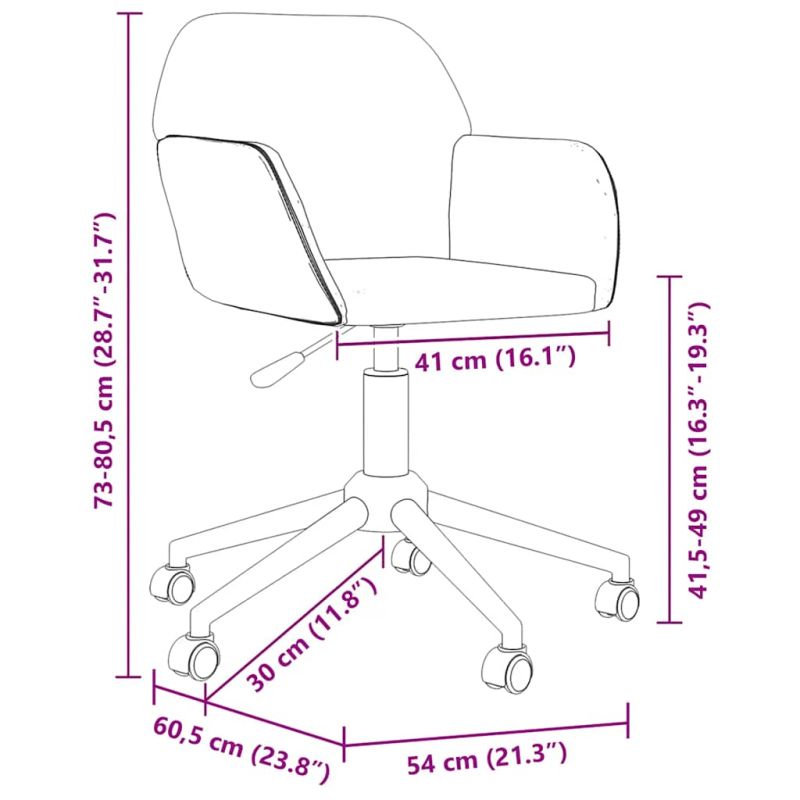 Този модерен въртящ се офис стол е перфектна комбинация от елегантност и комфорт, отличаващ се с минималистичен дизайн. Той се превръща в истински акцент в работното ви пространство. Висококачествен материал: Тъканта се отличава с прост и изчистен вид, дишаща и издръжлива.Стабилна рамка: Металните рамки осигуряват здравина и стабилност.Регулируема височина: Този стол за бюро разполага с газов повдигащ механизъм - можете да използвате лоста, за да регулирате височината на седалката си според вашите предпочитания и комфорт.Лесно местене: Въртящият се стол се мести лесно с оборудваните колела.Отлична гъвкавост: Въртящият се на 360 градуса дизайн позволява по-широк обхват на движение. Максимално 110 кг на седалка. Съобразете се с риска от открит огън и други източници на силна топлина в близост до продукта.