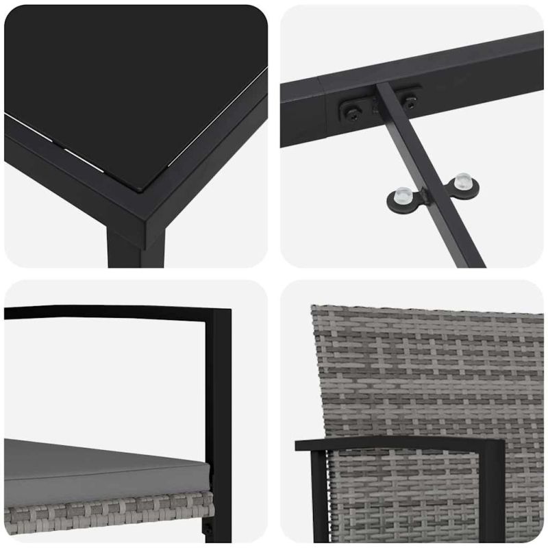 Този модерен комплект за хранене в градината съчетава стил, функция и комфорт, идеален за открити събирания. С чистите си линии и минималистичен дизайн, той лесно се вписва във всяка градина или тераса, добавяйки елегантност за празниците. Черната цветова палитра допълва всякакви поводи, от неформални бранчове до елегантни вечери. Материали: Комбинацията от прахово боядисана стомана и полиратан осигурява стил и здравина. Практичността на праховото покритие го прави устойчив на атмосферни условия, а полиратанът е мек и бързосъхнещ, идеален за динамичен начин на живот. Включени компоненти: В комплекта влизат стабилни облегалки и подвижни седалкови възглавници с цип за лесна поддръжка. Подлакътниците добавят комфорт при хранене на открито. Функции: Стилен, съвременен дизайн, прахово боядисана стомана за издръжливост. UV-устойчивите материали предпазват от слънчеви повреди, запазвайки добрия вид на мебелите. Препоръчителни употреби: Проектиран за градини и тераси, комплектът е идеален за тези, които обичат прости, функционални решения. Стилен е за пролетни и летни събирания, осигурявайки невероятно място за забавление. Грижа и поддръжка: За дълготрайност, използвайте покривало, когато не е в употреба. Лесно се чисти с мокра кърпа, без агресивни химикали. При сглобяването са нужни двама с отвертка за правилно настройване.