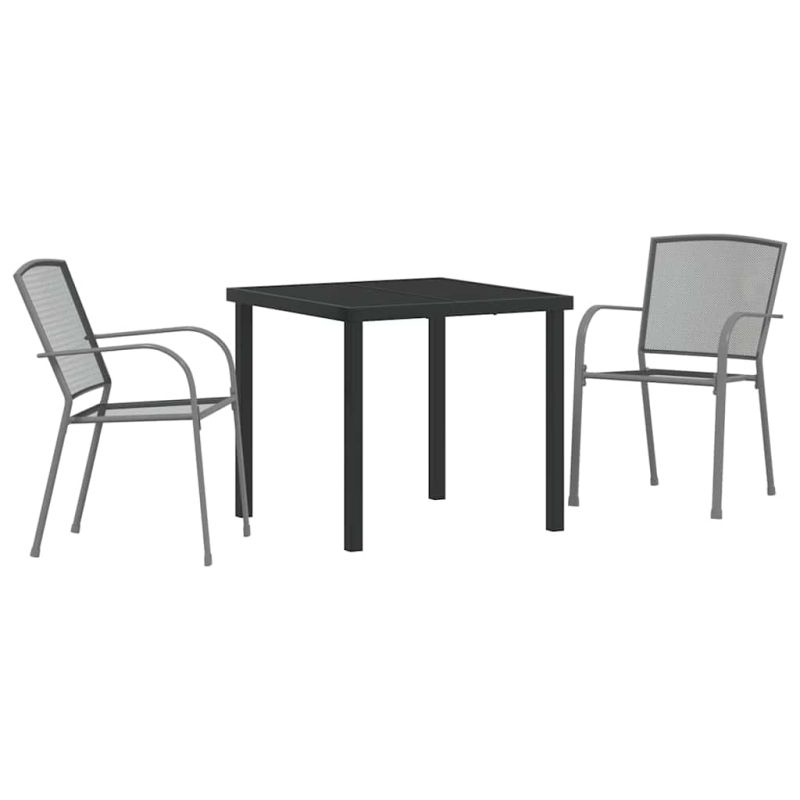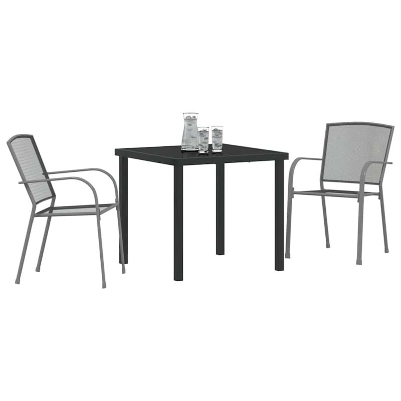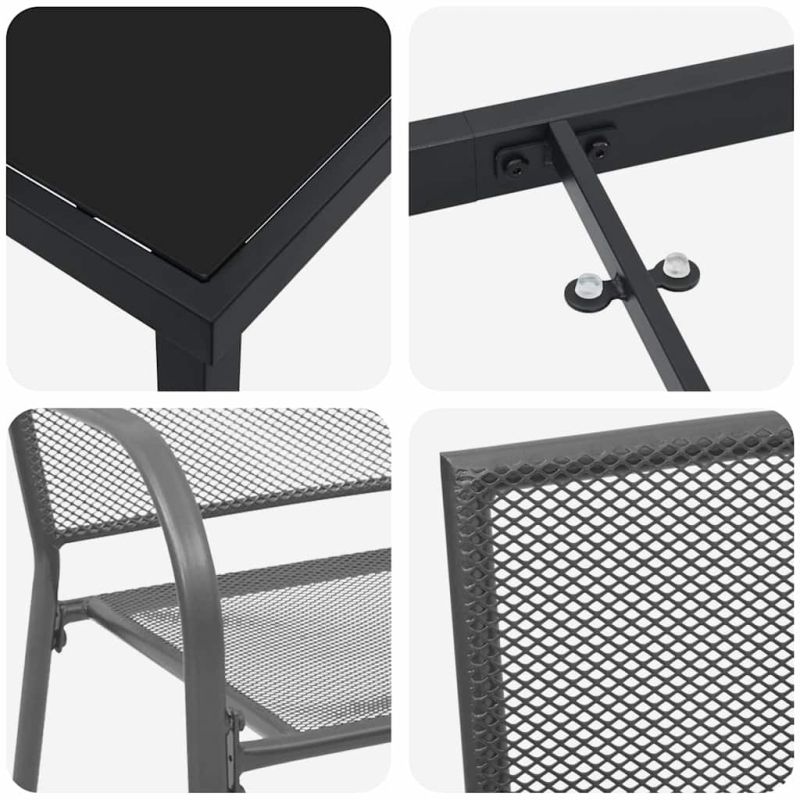 Този комплект за хранене на открито е страхотно допълнение към вашето пространство, със своята елегантна правоъгълна форма и стилен антрацитен нюанс. Перфектен е за вдъхновяващи събирания през топлите пролетни и летни сезони, той става основен център за приятелски разговори и хранения под открито небе. С изчистени линии и минималистичен вид, той безпроблемно се вписва в атмосферата на вашата градина или тераса. Състав на материала: Изработен от прахово боядисана стомана, известна със своята дълготрайност и устойчивост на лоши атмосферни условия. В комбинация със закалена стъклена маса, той предлага елегантен вид и надеждна повърхност за сядане. Функционални дизайнерски елементи: Завършенето на гърба му придава стил, дори на открито. Черните стоманени крака осигуряват стабилност за малки или големи събирания, изцяло подготвяйки ви за приятни вечери. Перфектен за открита употреба: Идеален за тераси и градини, той предлага приятно място за спокойно утринно кафе или весели вечери с близки. Дизайнът му осигурява многообразие и уют без загуба на стил. Бързосъхнеща функция: Проектиран да изсъхне бързо след дъжд, той е устойчив на натрупване на влага. Осигурява лесна поддръжка и дълготрайност през сезоните. Обширни инструкции за поддръжка: Просто е да се поддържа, просто го покрийте, когато не се използва, за да запазите свежия му вид и здравина, така че да се наслаждавате на повече време на открито без излишно притеснение. Максимално 110 кг на седалка.