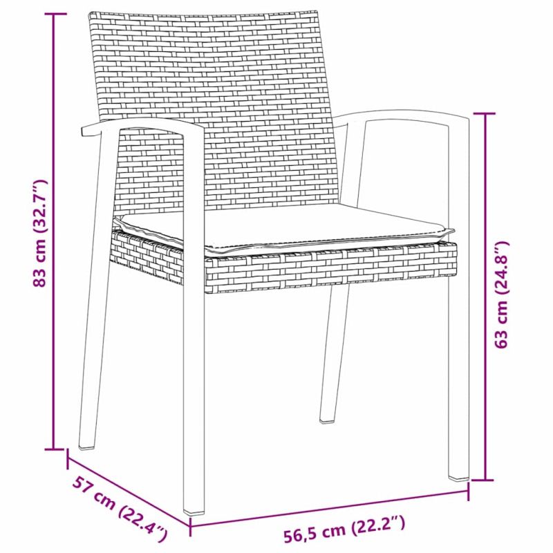 Този модерен комплект за хранене на открито предлага чудесно съчетание от стил и функционалност. Създаден за външна употреба, той е перфектен за пролетни и летни събирания в градината или на терасата. Черният стоманен каркас и прахово боядисаното покритие му придават стилен вид, който подхожда на всяко външно пространство. UV-устойчивите му материали защитават от атмосферните влияния и го правят надежден избор за хранене на открито. Полиестерният ратан добавя комфорт и изтънченост, позволявайки ви да се насладите на дълги вечери под слънцето или звездите. Материали: Комплектът е изработен от полиестерен ратан и стомана. Полиестерният ратан осигурява комфорт и стил, а стоманената рамка предлага здравина, устойчива на различни метеорологични условия. Включени компоненти: С подвижни седалкови възглавници, комплектът е удобен за ползване, а циповете улесняват поддръжката. Завършеният гръб добавя нотка изтънченост, а елегантните подлакътници осигуряват допълнителен комфорт. Особености: Изработен от издръжливи, UV-устойчиви материали, този комплект понася слънце и дъжд, идеален за постоянно разположение на открито. Прахово боядисаната рамка допълнително увеличава здравината и съхранява безупречен вид. Препоръчителни употреби: Перфектен за градини, тераси или други открити пространства, комплектът може да бъде акцент в вашия външен дом. Идеален за партита, семейни срещи или неформални вечери, той пасва на всякакви социални събития. Грижа и поддържане: Удължете живота му, като използвате покривало, когато не се ползва. Чистете с влажна кърпа и избягвайте агресивни химикали, за да предпазите материалите. Редовната поддръжка гарантира, че комплектът запазва привлекателния си вид през всички сезони. Максимално 110 кг на седалка. Съобразете се с риска от открит огън и други източници на силна топлина в близост до продукта.