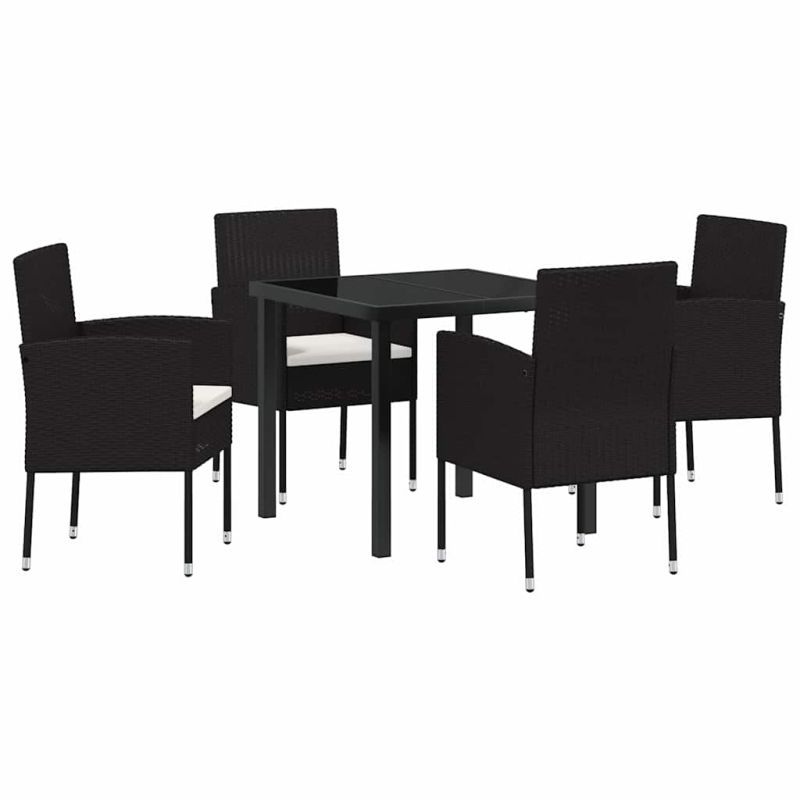 Комплект за хранене в градината 5 pcs Черно полиратан