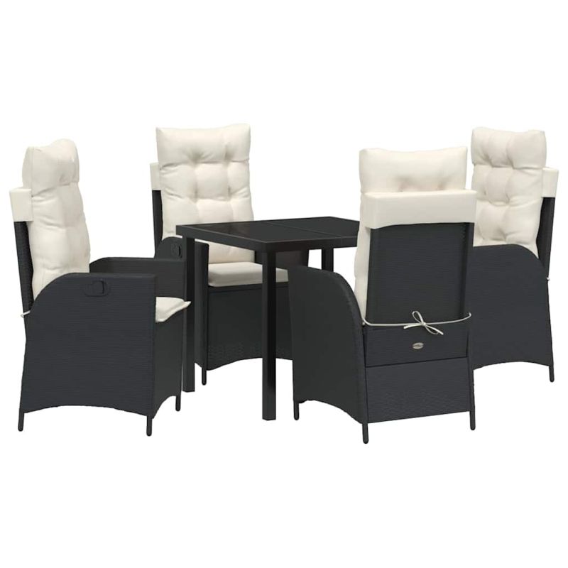Комплект за хранене в градината 5 pcs Черно полиратан