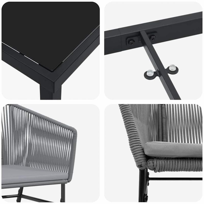 Този комплект за хранене в градината е буквално стилен квадрат, създаден да преобрази вашите открити площи. С елегантен правоъгълен дизайн, той е идеален както за хранене, така и за релакс. Представете си как се наслаждавате на бранч с приятели или как се излежавате през вечерта под звездите. Неговият минималистичен стил, с акцент на простотата и практичността, излъчва изисканост, благодарение на чистите линии и ненатрапчивата елегантност. Превърнете своята тераса в център на социални събития или спокойно убежище. Материали: Изработен основно от прахово боядисана стомана, този комплект за хранене е едновременно устойчив и стилен. Закалените стъклени плотове не само придават елегантност, но и осигуряват дълготрайна красота. Включени компоненти: Всеки основен елемент е изработен от качествена стомана, осигурявайки здравина и комфорт. Повърхността, със закалено стъкло, е идеална за всякакви хранения или любопитни срещи. Възглавниците, устойчиви на времето, добавят комфорт. Функции /функция /дизайн: Модерният дизайн е за онези, които предпочитат минимализма. Визията не само изглежда стилно, но предлага и отлична функционалност, адаптира се към всяка ситуация. Препоръчителни употреби: Идеален за различни открити пространства, като градини и тераси. Подходящ за семейни вечери, събирания с приятели или за момент на релакс, нашият комплект предлага прекрасен баланс между стил и комфорт. Грижа и поддръжка: За да запазите вида на комплекта, просто избирайте с кърпа. Покривайте го при лошо време, за да удължите живота му. Лесен е за поддръжка и предлага дългосрочна красота. Максимално 110 кг на седалка. Съобразете се с риска от открит огън и други източници на силна топлина в близост до продукта.
