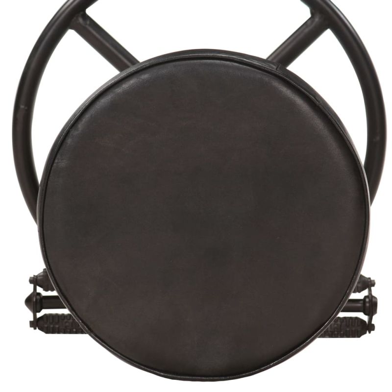 Тези меки и комфортни бар табуретки от естествена кожа имат уникален дизайн с велосипедни педали, които служат като подложки за крака. Те ще подхождат идеално не само на ресторанти или барове, но и в коридора, хола или трапезарията у дома. Тапицерията от козя кожа е мека на допир и прави табуретката изключително трайна. Подплатата създава комфортно място за сядане, докато здравата желязна рамка прави табуретките стабилни и издръжливи. Велосипедните педали с верига придават страхотен индустриален стил на стола. Нашите табуретки се сглобяват лесно. Максимално 110 кг на седалка. Съобразете се с риска от открит огън и други източници на силна топлина в близост до продукта.