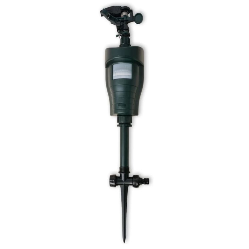 Този иновативен репелент за животни е практичен и здрав, предназначен за употреба на открито. Това е хуманно и високоефективно възпиращо средство за повечето животни, включително котки, катерици, чапли и други вредители в уязвими градински площи. Този иновативен спринклер се захранва от 2 алкални батерии AA 1,5 V (не са включени в доставката). След като вграденият сензор засече движение в обхват до 10 метра, той бързо активира водната струя. За да осигурите чувствителността, трябва от време на време да почиствате PIR обектива с влажна кърпа. Благодарение на използваните висококачествени материали, този репелент за животни е много издръжлив. Просто поставете заземяващия шип в земята, за да монтирате репелента. Този продукт е подходящ САМО ЗА УПОТРЕБА НА ОТКРИТО. Този продукт е предназначен само за употреба като средство за отблъскване на животни. НЕ позволявайте на деца да боравят с продукта. Смяната и инсталирането на батериите трябва да се извършват от възрастен. Извадете изтощените батерии от този продукт. Не изхвърляйте батериите в огън. Батериите могат да експлодират или да протекат. Не късо съединение на клемите на батерията. Не смесвайте нови и използвани батерии. Не смесвайте алкални и стандартни батерии. Не презареждайте неакумулаторни батерии. Не позволявайте на никоя част да влиза в контакт с топлина или открит пламък. Използвайте само препоръчаните батерии. Когато поставяте батерии (2×AA) в отделението за батерии, уверете се, че батериите са поставени както е маркирано (+) (-). Ако някоя част е повредена, трябва незабавно да спрете да използвате устройството.