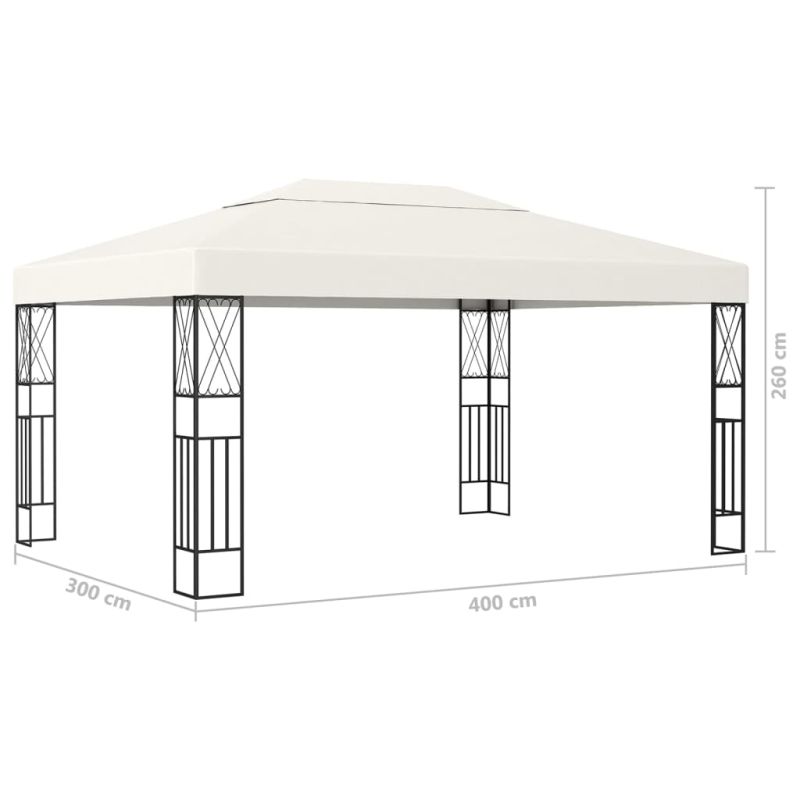 Тази просторна шатра ще бъде елегантно допълнение към вашето външно жилищно пространство, като същевременно предостави на семейството и гостите ви сянка при слънчеви дни. Вентилираният навес ще предотврати осуетяване на забавленията по време на семейни събирания, барбекюта, следобедни пикници и празнуване на рождени дни заради слънцето и дъжда. Беседката е със здрава стоманена конструкция и декоративни детайли с кръстовидна форма и покрив от полиестер. Сенникът може лесно да бъде прикрепен към стоманената рамка. Освен това светодиодните стрингове създават уютна атмосфера във вашата градина след залез слънце. Лампичките са екосъобразни, тъй като се зареждат от слънчевата енергия през деня. ЗАБЕЛЕЖКА: Този продукт НИКОГА не трябва да се използва при лошо време, като силен вятър, обилен дъжд, сняг, буря и др. Този продукт не трябва да се изхвърля заедно с други битови отпадъци в Европейския съюз.
