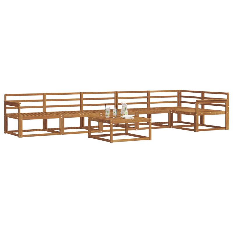 Този стилен комплект за градински диван съчетава модерен стил с функционалност, идеален за всяко градинско или патийно пространство. Със семплия си вид, той създава уютна атмосфера с хубавата акациева дървесина. Перфектен за събирания с близките или спокойни вечери навън, този комплект добавя уют и елегантност в откритите пространства. Конструкция от акация: Направен от устойчиво масивно акациево дърво, комплектът е здрав и добавя стил на откритите пространства. Акациевата дървесина е известна с дълготрайността си, което означава, че мебелите ще изглеждат чудесно дълго време. Нейният естествен цвят обогатява градината и изисква минимална грижа. Поддръжка на облегалката: С елегантно проектирана решетъчна облегалка, комплкетът осигурява комфорт и придава изискан вид. Тя е създадена да поддържа правилната поза и позволява добра циркулация на въздуха, което прави дългото седене приятно. Практична облегалка: За тези, които обичат да се отпуснат, облегалките от същото акациево дърво предлагат допълнителен комфорт. Независимо дали се наслаждавате на следобеден коктейл или вършите домашни задължения, облегалките осигуряват върховно удобство за дългите разговори и мигове на почивка. Гъвкава настройка: Модулният дизайн позволява лесна промяна на формата на комплекта спрямо нуждите ви. Идеален за всякакви ситуации, от комфортни уединени зони до просторни социални пространства, в които да каните приятели. Лесна поддръжка: Пазете свежия вид на комплекта, просто избърсвайте с влажна кърпа и покривайте, когато не го използвате. Съхранявайте на сянка при лошо време, за да удължите живота му. Така ще запазите елегантния му вид за дълго време.