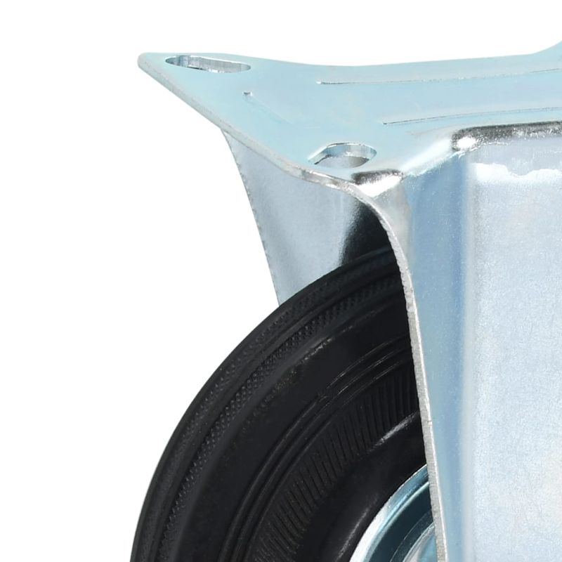 Този комплект от 12 фиксирани колела ще бъде идеалният аксесоар за малко оборудване и мебели като работна маса, количка, масичка за кафе, поставка за растения, рафт за книги, количка за пазаруване и др. Тези колелца са изработени от гума, която се отличава с добра устойчивост на удар и вибрации, което позволява на колелцата да работят гладко и тихо. Освен това техните меки повърхности ефективно предпазват вашия под от надраскване. Освен това желязната рамка с поцинковано покритие е силно устойчива на ръжда и по този начин допринася за здравината и издръжливостта на колелцата. Всяко колело има максимална товароносимост до 100 кг. Доставката включва 12 фиксирани колела.