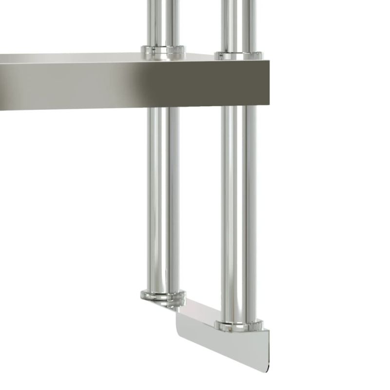 Тази кухненска маса е идеална за приготвяне и съхранение на храна и е идеална за кухненски бар, ресторант, училище, както и за други търговски обекти. Издръжлива и стабилна конструкция: Работната маса е изработена от неръждаема стомана, осигуряваща устойчивост на корозия и ръжда за години на надеждна употреба. Гладката повърхност е лесна за почистване и поддръжка, осигурявайки хигиенична зона за приготвяне на храна.Просторно работно място: Подготвителната маса от неръждаема стомана е проектирана с долен рафт и 2-етажен горен стелаж за персонализирано място за съхранение, осигурявайки достатъчно място за съхранение на вашата микровълнова фурна, кухненски прибори или всякакви други инструменти, от които може да се нуждаете.Регулируеми крачета: Регулируемите крака с нехлъзгащ дизайн гарантират, че кухненската подготвителна маса остава стабилна и ще стои неподвижна, предпазвайки пода от повреда. Внимание:За да предотвратите преобръщане, този продукт трябва да се използва с предоставеното устройство за закрепване на стена.