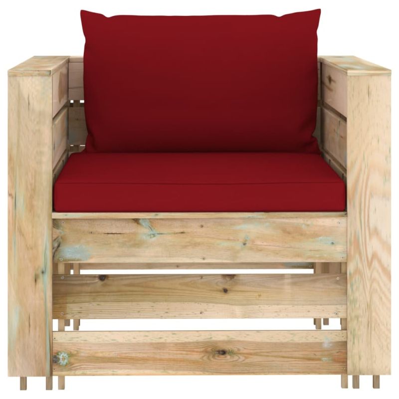 Този градински лаундж комплект представлява идеален избор, позволяващ ви да се отпуснете и да се насладите на времето, да подремнете или побъбрите със семейството или приятелите си. С непреходен палетен дизайн дървеният комплект мека мебел добавя нотка на рустик чар към вашия вътрешен двор, градина или всекидневна. Изработен от импрегнирана борова дървесина, палетният лаундж комплект е издръжлив и устойчив на атмосферни влияния. Този външен диван има здрава конструкция и изисква малко поддръжка. В комбинация с дебело подплатени възглавници, диванът осигурява максимален комфорт. В допълнение, модулният дизайн също така дава възможност да поставите комплекта във всяка подредба според вашия вкус. Забележка: За да удължите живота на вашите градински мебели, ви препоръчваме да ги защитите с водоустойчиво покривало.