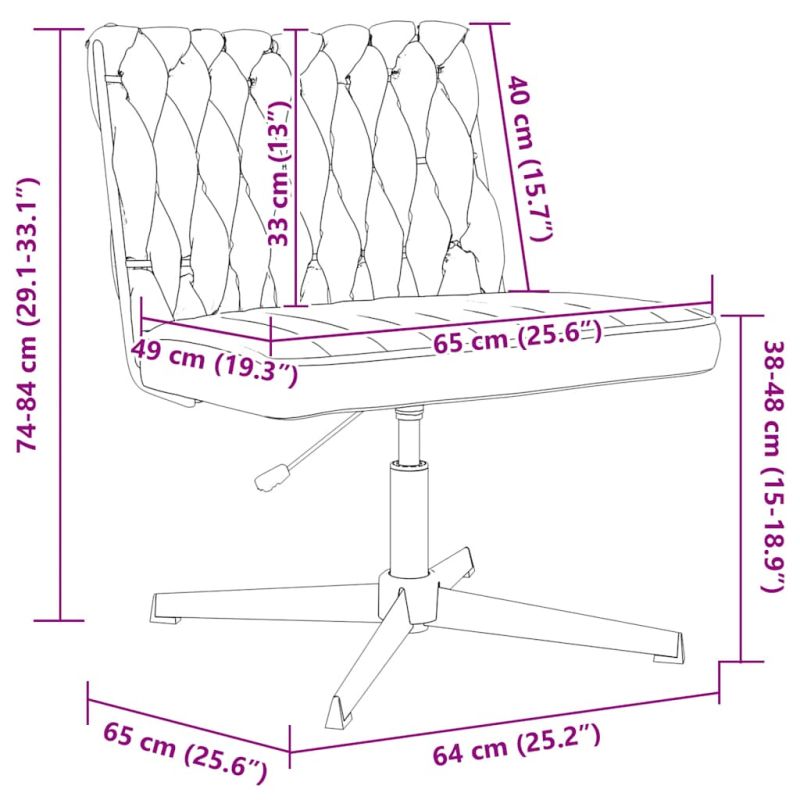 Този модерен въртящ се офис стол е перфектна комбинация от елегантност и комфорт, отличаващ се с минималистичен дизайн. Той се превръща в истински акцент в работното ви пространство. Издръжлив и дълготраен материал: Полиестерната тъкан се оценява като издръжлива, устойчива на мачкане и лесна за поддръжка. Изсъхва бързо и запазва цвета си за дълго време, което го прави популярен избор за мебели, дрехи, спално бельо, завеси и др.Удобно седене: Меката тапицерия на офис седалките предлага максимален комфорт и опора, осигурявайки приятно усещане при седене.Голяма гъвкавост: Този стол може да се върти свободно на 360 градуса, което му осигурява голяма гъвкавост.Регулиране на височината: Можете лесно да регулирате височината на работния стол според нуждите си с помощта на удобния лост под седалката.Универсална употреба: Перфектен за трапезарии, кухни или домашни офиси, столът за бюро придава функционалност и чар на различни вътрешни пространства.