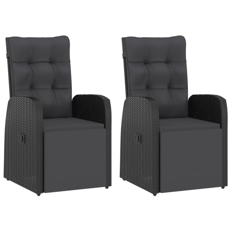 Този комплект за хранене на открито, с елегантен и съвременен дизайн, е привлекателно допълнение към вашето външно жилищно пространство. Комплектът градински мебели има здрава прахово боядисана стоманена рамка, която е много стабилна и издръжлива. PE ратанът прави трапезния комплект лесен за почистване, устойчив и подходящ за ежедневна употреба на открито. Стъкленият плот на масата също се почиства лесно с влажна кърпа. Накланящите се столове предлагат пълен комфорт при седене и страхотна опора. Облегалката може да се регулира лесно според желанието ви с помощта на страничния бутон. Столовете с опора за крака също предоставят допълнителен комфорт. При това плътните и меки възглавници за сядане и облягане са също изключително удобни. Забележка: Препоръчваме да покривате комплекта при дъжд, сняг и скреж за удължен експоатационен живот. Максимално 110 кг на седалка. Съобразете се с риска от открит огън и други източници на силна топлина в близост до продукта.