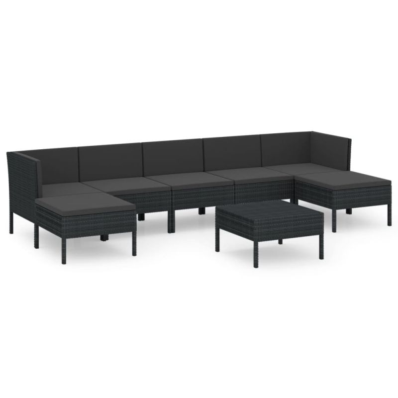 Градински лаундж комплект с възглавници 8 части полиратан черен