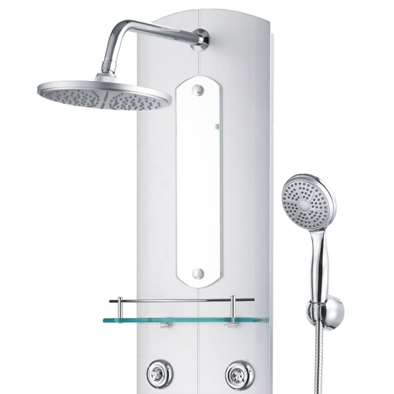 Тази многофункционална душ панелна система има стилен дизайн и ще бъде чудесно допълнение към вашата баня. Корпусът на душ панела е изработен от пластмаса, която е лека и лесна за преместване. Има три режима на душ: душ пита, масажен спрей и ръчен душ, между които се избира лесно. Проектиран е с малко огледало на душ панела. Има и стъклен рафт, където можете да поставите продуктите си за душ. Силиконовите дюзи са устойчиви на натрупване на варовик. Потопете се в истински релаксиращо преживяване по време на душ и се насладете на модерния стил на тази красиво проектирана душ панелна система!