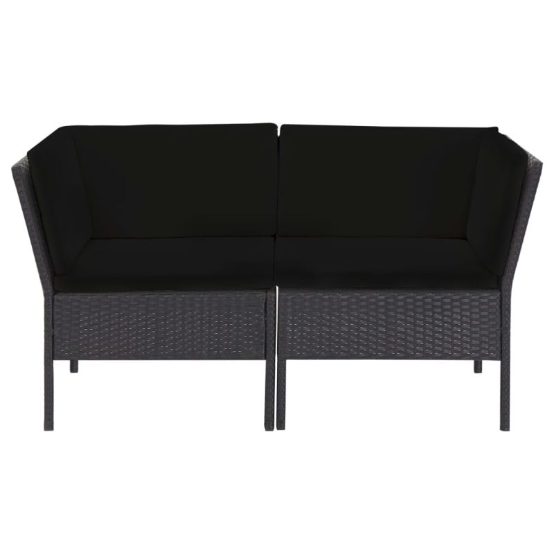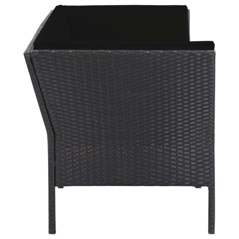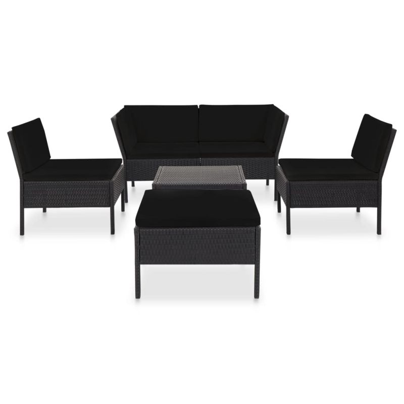 Градински комплект с възглавници, 6 части, полиратан, черен