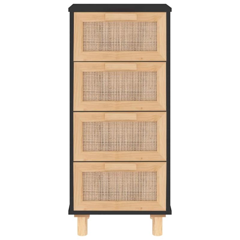 Начало Дом и градина Мебели Шкафове и решения за съхранение Бюфети и шкафове Сайдборд, черен, 40x30x90 см, бор масив и естествен ратан