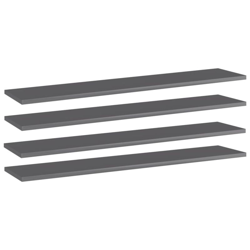 Рафтове за етажерка, 4 бр, сив гланц, 100x20x1,5 см, ПДЧ
