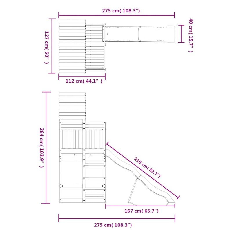 Искате ли да дадете на децата си свободата да играят у дома? Това дървено комбинирано детско съоръжение за игра на открито превръща задния ви двор в детска площадка за изпълнени с фантазия приключения! Издръжлив материал: Това съоръжение за игра е изработено от масивно дугласко дърво. Дървесината от дугласка ела също е изключително издръжливо дърво, което е много подходяща за открито. Дугласката дървесина е достатъчно здрава, за да функционира с минимални грижи, дори под въздействието на атмосферните влияния.Здрава и стабилна рамка: Дървената рамка на оборудването за детска площадка осигурява здравина и стабилност.Многофункционални центрове за дейности: Дървеното съоръжение за игра разполага с платформа с височина 118 см и се отличава с вълнообразна пързалка и пясъчник. Вашите деца могат да поканят и своите приятелчета да се присъединят към забавлението.Внимателно разработен дизайн: Околните дървени парапети са проектирани така, че да гарантират безопасността на децата по време на веселите им игри. Освен това дървеният покрив осигурява сянка за вашите деца в горещите летни дни.Безкрайно забавление: Тази дървена детска площадка, която предлага много забавления, е идеалният начин децата ви и техните приятели да играят, да прекарват повече време в общуване и да създават спомени с вас! Внимание:Само за домашна употребаИзползване на откритоНе е подходяща за деца под 3 години Препоръчителна възраст на потребителя: 3-8 години Предупреждение. Не е подходящ за деца под 3 години. Само за домашна употреба. GPSR