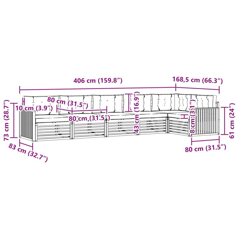 Комплектът за външни мебели комбинира стил и практичност, създавайки атрактивна централна част във всяка градина или тераса. Модерният му дизайн с чисти линии добавя елегантност и е перфектен за външна релаксация и социални събирания. Изработен е от масивна акациева дървесина, осигуряваща дълготрайност и визуална привлекателност, идеален за любителите на практичните и стилни градински мебели. Издръжлив масивен акациев дървен материал: Този комплект мебели е известен със своята устойчивост на времето. Здравата конструкция осигурява надеждност и дълготрайност, а топлият естествен тон подхожда на всяко градинско или терасно пространство. Временно устойчив дизайн: Лакираната повърхност предлага допълнителна защита от слънце и леки дъждове. Полираното покритие запазва естетиката и функционалността, позволявайки използване на вашата градина, тераса или двор с дългосрочна устойчивост. Компоненти и дизайн: Всяка част, от подлакътниците до облегалките, е проектирана с внимание. Поддържащите елементи осигуряват комфорт, а съгласуваният дизайн гарантира визуално единство, подходящо за различни открити поводи. Комфорт и многофункционалност: Модулният дизайн предлага различни конфигурации, адаптирайки се към вашите нужди. Перфектен както за релаксация, така и за социални събирания или четене, този комплект е сигурен източник на комфорт и практичност за всяка открита среда. Лесна поддръжка: За да запазите мебелите в добро състояние, просто избърсвайте с мокра кърпа. Редовната поддръжка ще удължи живота на мебелите.