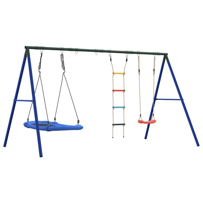 Превърнете градината си в детска площадка за вашите деца с тази външна люлка! Център за забавни занимания: Този комплект детски люлки разполага с 3 различни опции за игра със седалка люлка, стълба за катерене и овална люлка гнездо. Така децата могат да се люлеят и катерят до насита.Издръжлива метална рамка: Тази рамка за люлка е изработена от боядисани стоманени тръби, които са устойчиви на ръжда, изключително здрави и устойчиви на деформация, осигурявайки отлична стабилност и издръжливост. А-образната структура предлага здрава опора без никакво колебание.Регулируема седалка за люлка: Тази градинска люлка е проектирана да расте с вашето дете, което я прави подходяща както за малки, така и за подрастващи деца. Чрез регулиране на дължината на въжето можете лесно да се приспособите към променящите се нужди на вашето дете.Многофункционални играчки за открито за деца: Тази градинска люлка помага на децата да подобрят своя баланс, координация, ловкост, сила и издръжливост, като същевременно предоставя различни начини за игра и упражнения.Широки приложения: Тази рамка за люлка може да се постави на различни места като градини, задни дворове, детски градини, детски площадки и др. Добре е да се знае:С оглед на безопасността всяка люлка трябва да се използва само от едно дете. Предупреждение. Не е подходящ за деца под 3 години. Само за домашна употреба. GPSR
