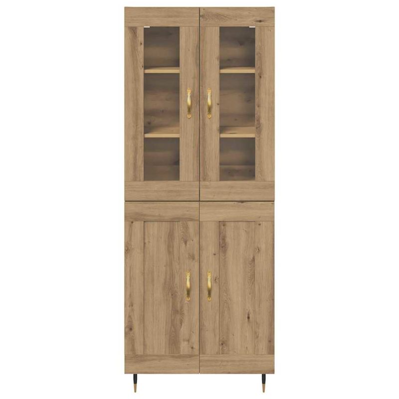 Този модерен висок шкаф за съхранение съчетава рустик стил с модерен дизайн, добавяйки хармония в трапезарията или всекидневното пространство. Формата му и уникалното текстурирано покритие дават вечен чар, а обмисленият дизайн е за тези с усет за стил, който е и практичен. Материали: Направен от висококачествена инженерна дървесина, шкафът е здрав и с текстурирано покритие, добавяйки дълбочина на всяка стая. Дървото е естествено здраво, така че е безопасно за съхранение на ценни трапезни принадлежности или декорации. Включени компоненти: Стъклените врати на шкафа дават възможност да показвате хубави чинии или колекции, а с тях се пазят и от прах. Стъклените панели придават елегантност и са динамичен акцент в пространството. Характеристики / Функция / Дизайн: Шкафът е с метални дръжки с примка с матово златисто покритие, съчетавайки удобство с луксозен вид. Дизайнът е ергономичен, освежава всяка стая и осигурява лесен достъп до съхранените неща. Конусовидните крака от здрав метал осигуряват стабилност и модерен вид. Препоръчвани приложения: Идеален е за трапезарии, които търсят стилни решения за съхранение, шкафът може да се използва и за кухни, всекидневни или като акцент в коридори. Неговият рустик чар балансира стил и многофункционалност, отговаряйки на различни нужди от съхранение. Грижа и поддръжка: Защитете дома си, като закрепите шкафа за стената, за да предотвратите опасността от преобръщане. Лесно се поддържа и изисква минимални грижи. Сглобяването изисква отвертка и бормашина и е най-добре да се прави от двама души за максимална стабилност и дълговечност.