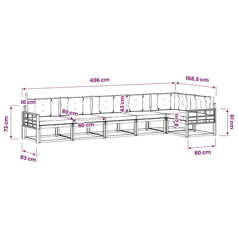 Този комплект градински секционен диван внася модерен стил навсякъде – било то градина, тераса, задния двор или дори край басейна. Съчетава стил и простота, а модулният му дизайн позволява да го настроите според нуждите си. Създаден е с внимание, за да бъде основна част на всеки открито пространство. Масивна акациева дървесина: Всеки елемент на комплекта е направен от здраво масивно акациево дърво. Красивите нюанси му придават елегантност, а здравината му осигурява дълготрайна издръжливост – идеалният избор за градина. Дизайн с ламели: Решетъчната облегалка и рамка добавят стил, докато подобряват въздушния поток. Този елемент е удобен и направен, за да привлича окото на любителите на красивото. Подкрепяща облегалка: Осигурява удобно сядане с ергономичен дизайн, правейки дългото седене приятно. Идеално за разговори или просто почивка. Модулни възможности: Модулният дизайн ви дава свобода да пренареждате местата. Създайте комфортна обстановка за всяко събиране или пък уютни кътчета за релакс. Поддръжка и грижа: Лесен за поддръжка, просто избършете с влажна кърпа. Когато не го ползвате, сложете покривало за по-дълготрайност.