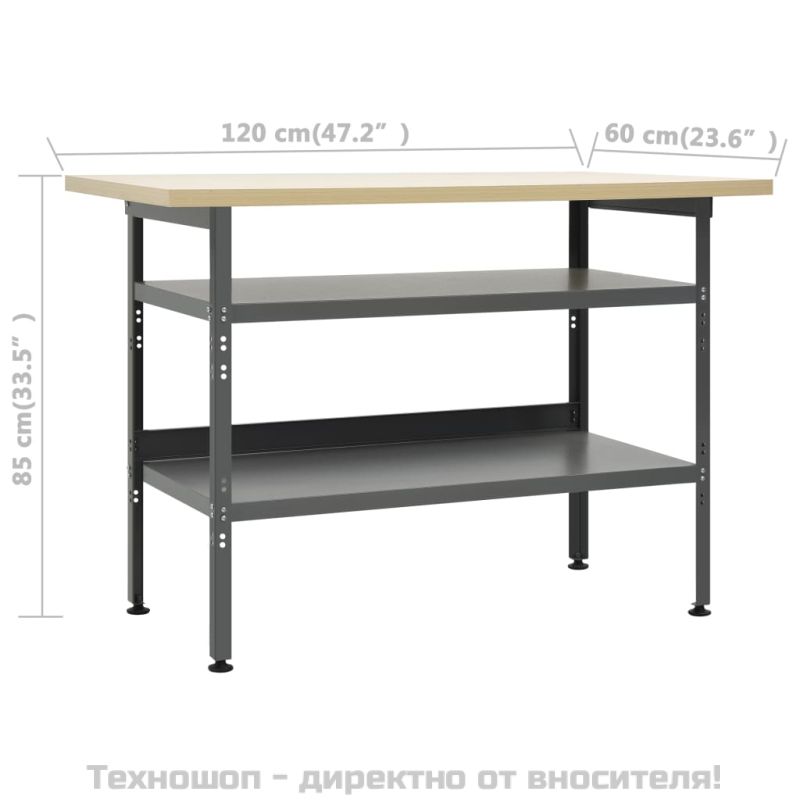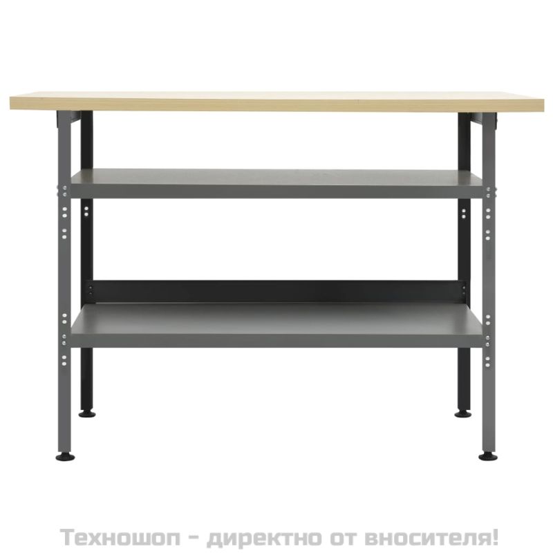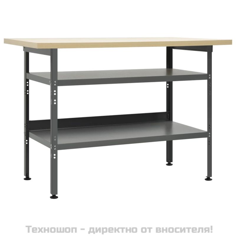 Тази стабилна работна маса, открояваща се с достатъчно място за съхранение и товароносимост от 300 кг, е съществено допълнение към вашата работилница и гараж. Големият и здрав плот предлага стабилна платформа за всички ваши ремонтни дейности. Работната маса има 2 големи рафта за удобно поставяне на бормашини, кабелни барабани, шлайфмашини и други инструменти. Освен това краката са с регулируема височина. Можете да поставите работната маса навсякъде, където имате нужда, и тя ще стои стабилно дори на неравен терен. Тази работна станция е изработена от първокласна стомана и инженерно дърво, което я прави изключително здрава, издръжлива и лесна за почистване. Сглобяването е лесно. Работната маса е страхотен помощник, независимо дали искате да завършите ремонтни работи или да изпълните мечтите си тип „Направи си сам“!