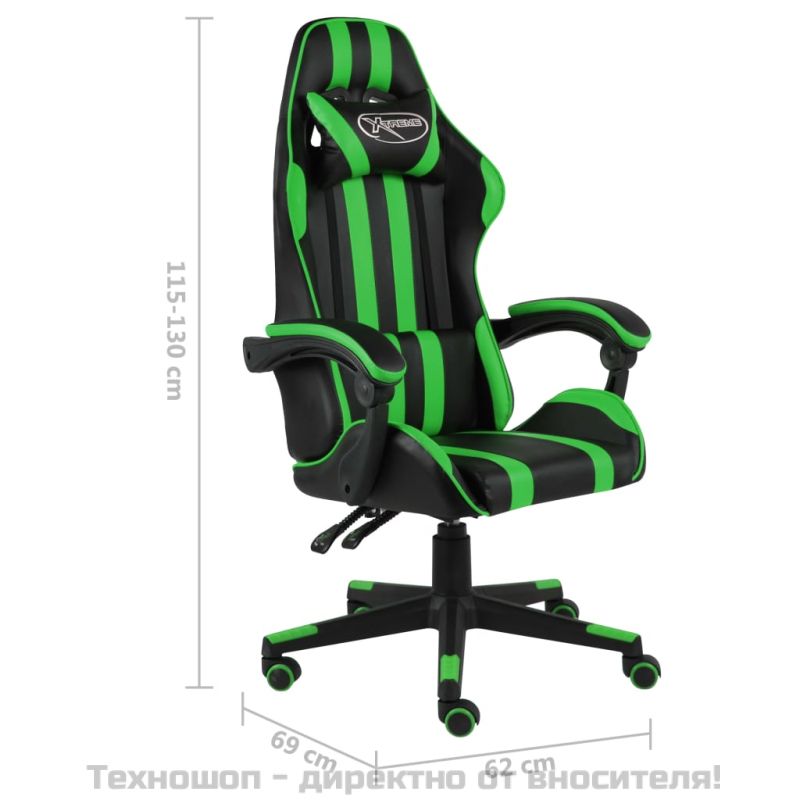 Този оригинален и луксозен геймърски стол е тапициран с лесна за почистване изкуствена кожа, с което осигурява изключително комфортно място за игри или работа. Този геймърски стол е изработен от трайна и мека на допир изкуствена кожа. Столът разполага с удобна, плътно подплатена седалка и висока облегалка. Височината на седалката се регулира бързо според личните изисквания, докато въртенето на 360 градуса и дизайнът с 5 колела улесняват местенето. В напълно наклонена позиция ще се усещате като във въздуха, което го прави идеален за игри. Регулируемият стол извежда комфорта на съвсем ново ниво с облегалката за глава, лумбалната възглавница и подлакътниците. Максимално 110 кг на седалка. Съобразете се с риска от открит огън и други източници на силна топлина в близост до продукта. GPSR
