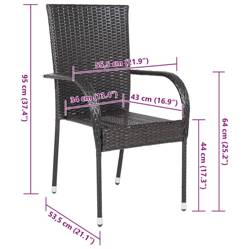 Добавете модерен щрих към вашата градина, вътрешен двор или тераса с тези полиратанови трапезни столове! Тези стифиращи градински столове са изработени от водоустойчив PE ратан, който ги прави износоустойчиви, лесни за почистване и подходящи за ежедневна употреба на открито. Столовете за употреба на открито имат прахово боядисана стоманена рамка, която ги прави здрави и стабилни. Градинските столове са леки и могат да се подредят един върху друг, за да пестят място, когато не ги ползвате. Максимално 110 кг на седалка.