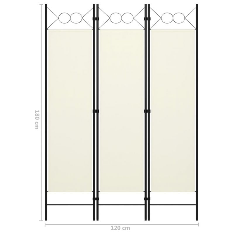 Параван за стая, 3 панела, бял, 120x180 см