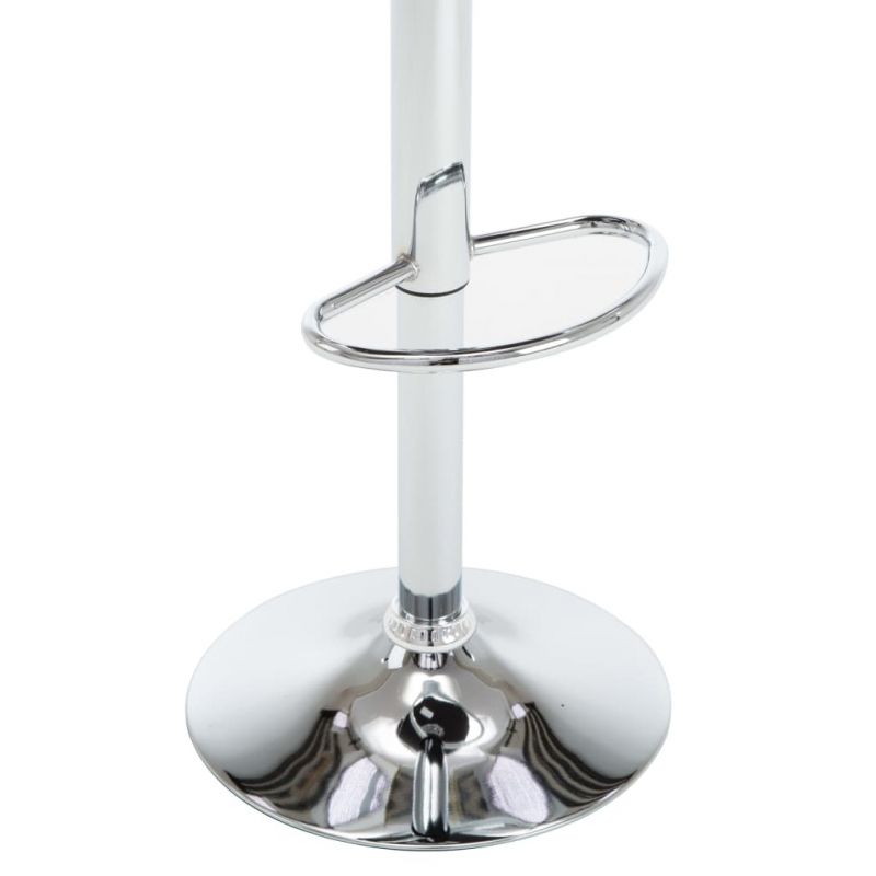 Тези бар табуретки, отличаващи се със семпъл, но стилен дизайн, предлагат страхотен комфорт при отдих или хранене. Тези бар табуретки са тапицирани с лесна за почистване изкуствена кожа за оптимален комфорт при седене. Поддържани от хромирани стоманени рамки, те са стабилни и здрави. Меките подплатени с пяна седалки, облегалки и подложки за крака правят столовете идеално място за отдих. Благодарение на газовия повдигащ механизъм, пъб табуретките се регулират и на височина. Те могат да се въртят на 360 градуса за невероятна гъвкавост. Максимално 110 кг на седалка.