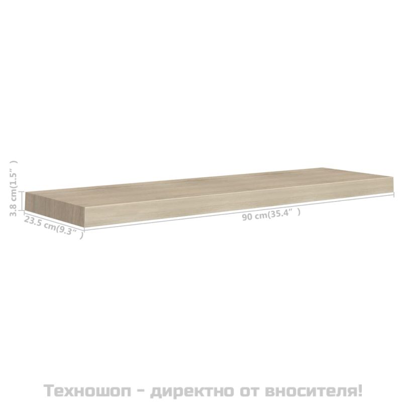 Окачен стенен рафт, дъб, 90x23,5x3,8 см, МДФ